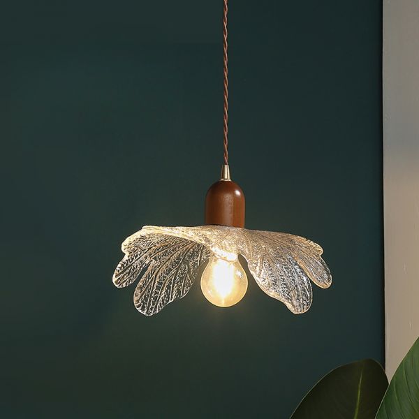 Nordic Walnut Wood Pendant Light with Brass Accents and Sculptural Lotus Leaf Shade - 110V-120V