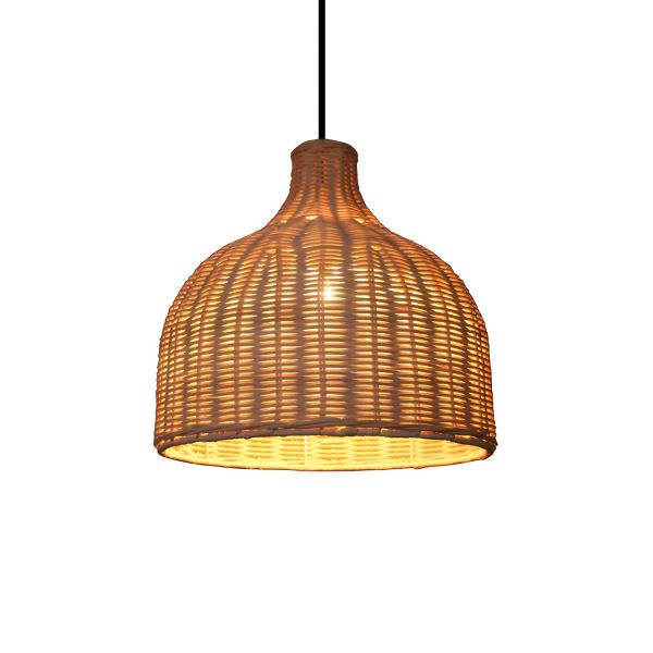 Wabi-Sabi Rattan Pendant Light Hand-Woven Bell Shape Hanging Ceiling Lamp for Zen Inspired Spaces - 110V-120V Wood Color 10"