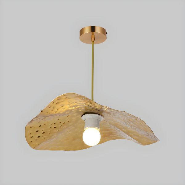 Hammered Brass Lotus Leaf Pendant Light, Organic Botanical Hanging Fixture - Brass 110V-120V 12"