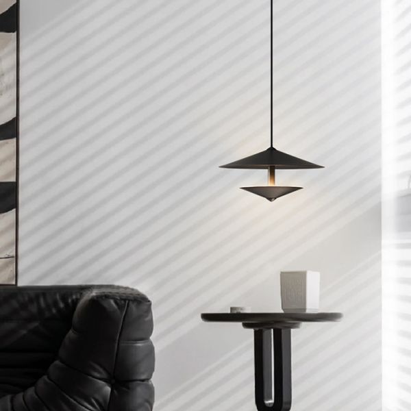 Scandinavian Minimalist Double Cone Pendant Light, Metal LED Suspension Fixture - Black 110V-120V 10"