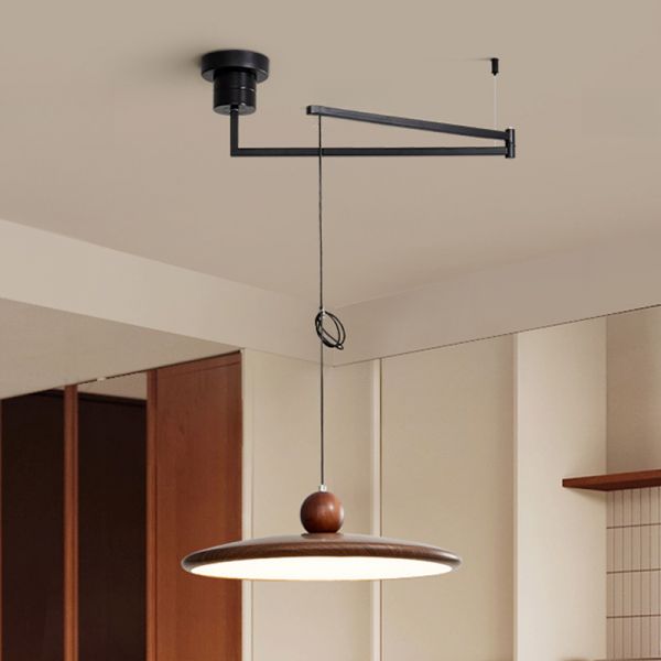 Mid-Century Swing Arm Pendant Light, Adjustable Walnut Finish Saucer Chandelier for Off-Center Wiring - 110V-120V