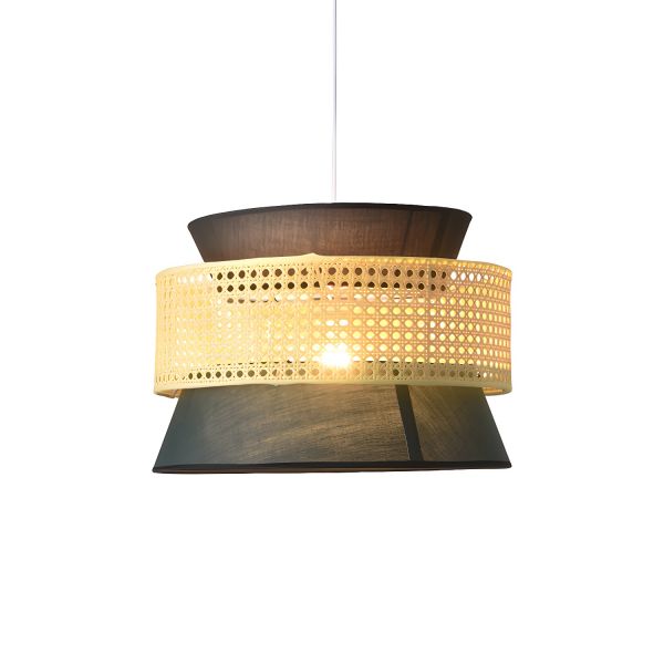 Japandi Woven Rattan and Fabric Tiered Pendant Light for Zen Inspired Living Spaces - 110V-120V Blackish Green 16"