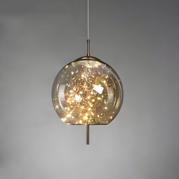Contemporary Glass Pendant Light with Warm Ambient LED Starry Glow - 110V-120V Globe Amber