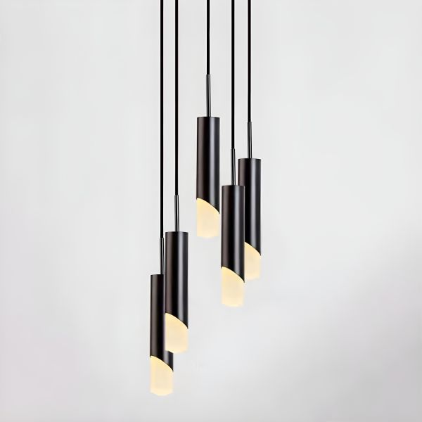 Contemporary Minimalist Cylinder Pendant Light, Integrated LED Hanging Fixture with Acrylic Shade - 110V-120V Black 5 Warm Light