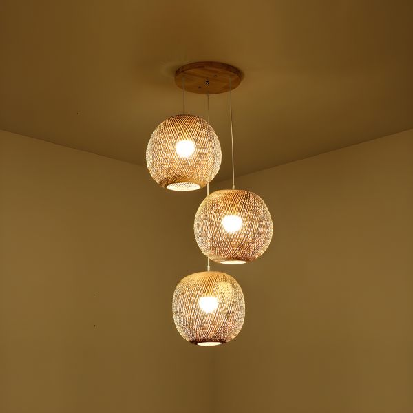 Boho Natural Bamboo Pendant Light, Hand-Woven Rattan Hanging Fixture for Dining Room & Kitchen Island - 110V-120V Globe