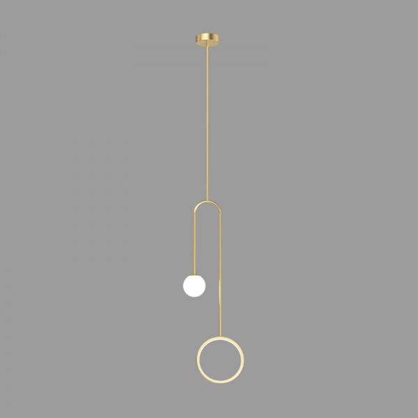 Contemporary Asymmetric Pendant Light, LED Ring & Glass Globe Hanging Fixture - 110V-120V Circle Gold White Light