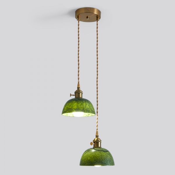 Vintage Art Deco Green Stone Pendant Light, Brass Hanging Fixture with Rotary Switch for Kitchen Island - 110V-120V 2 Round