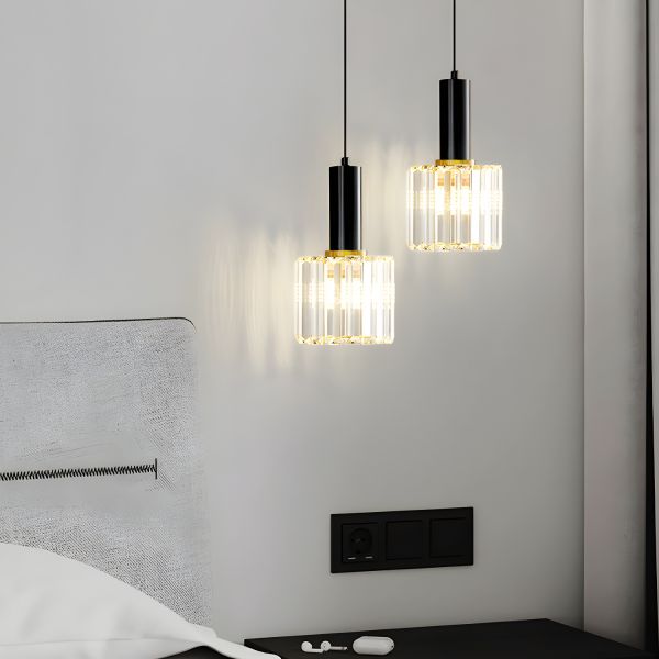 Contemporary Luxe Crystal Cylinder Pendant Light, Prismatic Hanging Fixture for Kitchen Island or Bedside - 110V-120V Black 7"