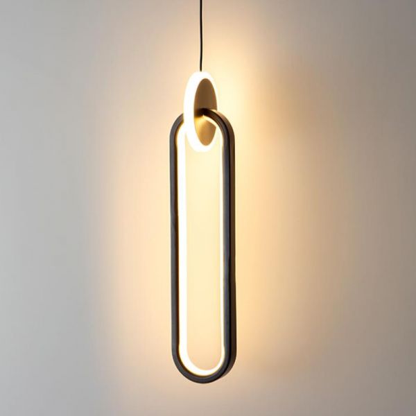 Nordic Geometric LED Pendant Light, Sculptural Hanging Fixture with Silicone Diffuser - Black 110V-120V Oval
