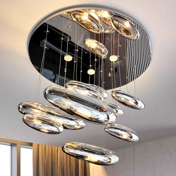 Contemporary Sculptural Chrome Chandelier, Liquid Mercury Glass Cluster Pendant Light with Adjustable Suspension for High Ceilings and Stairwells - 110V-120V 7