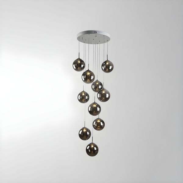 Contemporary Glass Globe Cluster Chandelier, Adjustable Crystal Pendant Lighting for High Ceilings - 10 110V-120V Grey