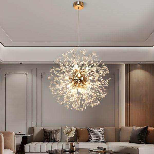 Luxe Crystal Firework Chandelier, Adjustable Sputnik Pendant Light Fixture for Dining & Bedroom - 110V-120V Gold 8