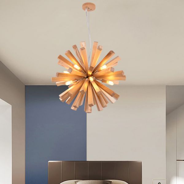 Mid-Century Modern Wood Starburst Chandelier Dandelion Pendant Light for Dining Room Entryway - 110V-120V Wood Color 20.5"
