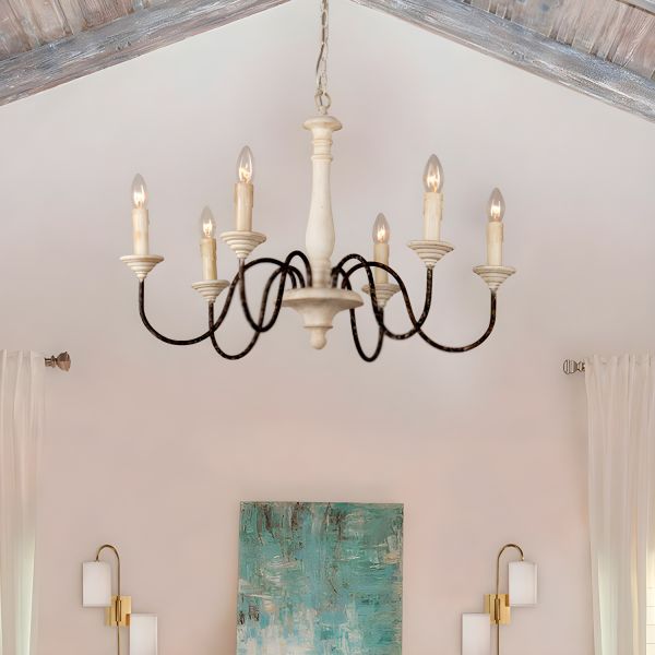 Multi Lights Metal Hanging Light Rustic Candle Style Living Room Chandelier Lamp - 110V-120V White 6