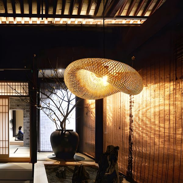 Japandi Woven Bamboo Pendant Light, Natural Rattan Hanging Lamp for Dining Room Kitchen Island - 110V-120V 1