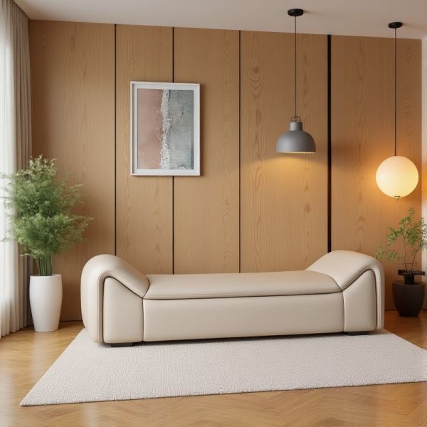 Modern Faux Leather Upholstered Bench, Backless Rectangular Daybed Seat for Living Room or Entryway
