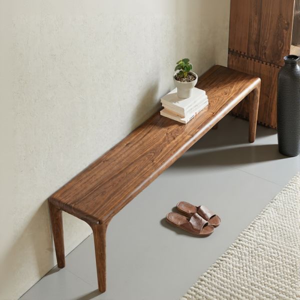 Long Solid Wood Bench, Rectangular Minimalist Dining/Entryway Seat for Living Room