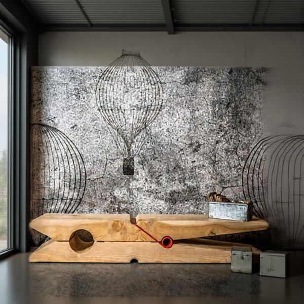 Sculptural Solid Wood Clothespin Coffee Table, Modern Centerpiece with Open Shelf Storage