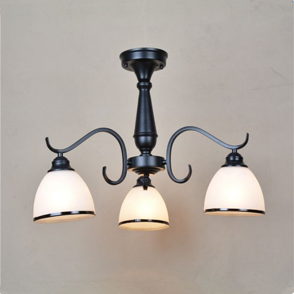 Modern Farmhouse Chandelier Lighting, Matte Black Metal Fixture with Frosted Glass Shades - 3 110V-120V