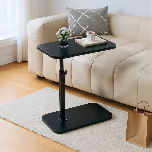 Casual Height-adjustable Turned Chairside Table in Brown Wood with a Tabletop in Engineered Wood, Black, 16"L x 12"W x 31"H, Lift