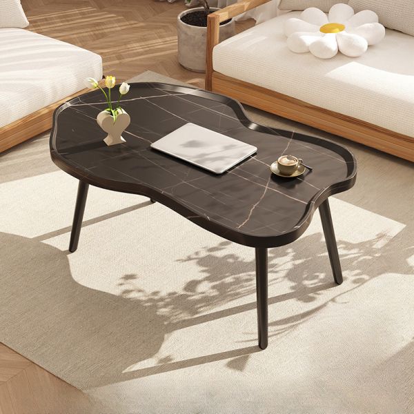 Organic-Shaped Walnut Wood Coffee Table, Mid-Century Modern Accent with Curved Edge and Black Metal - Black 31"L x 24"W x 19"H
