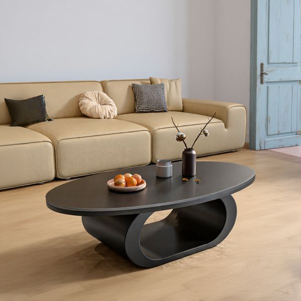 Modern Oval Coffee Table with Storage, Matte Black Living Room Center Table with Open Shelf & - Black 39"L x 22"W x 16"H