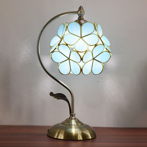 Cluster-Flower Table Light Tiffany Style Glass Nightstand Lamp for Bedroom - 110V-120V Plug In Electric Light Blue Dimmer
