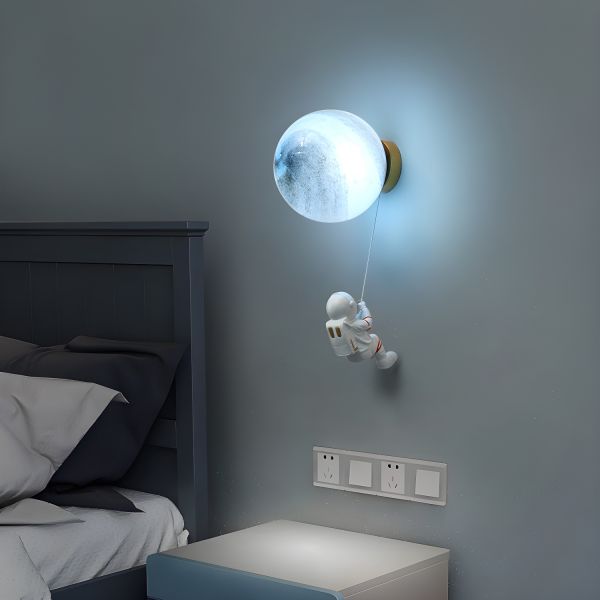 Whimsical Astronaut Wall Sconce 3D Moon Lamp for Nursery Kids Room Decor - 110V-120V Blue 6"