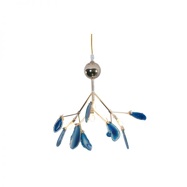 4 Lights Sunburst Adjustable Height Chandelier with Azure Agate Stone Shade, 110V-120V