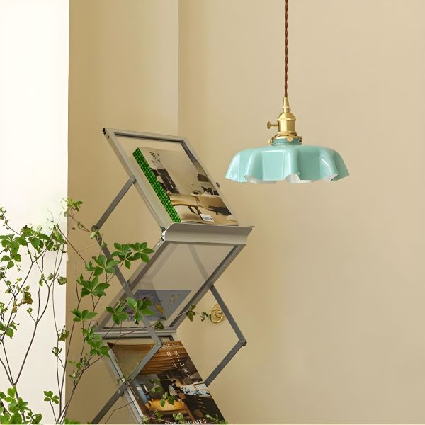 French Vintage Fluted Glass Pendant Light, Brass Hanging Lamp with Wavy Shade for Kitchen Island Ambiance - Light Blue 110V-120V Not Solid Wood