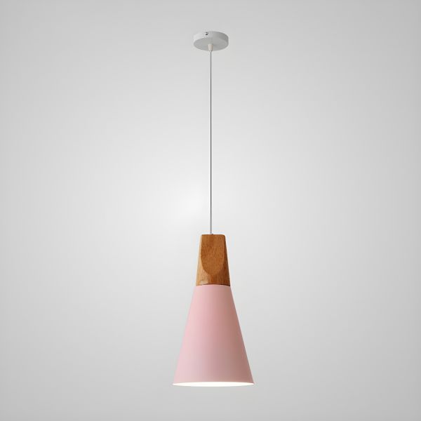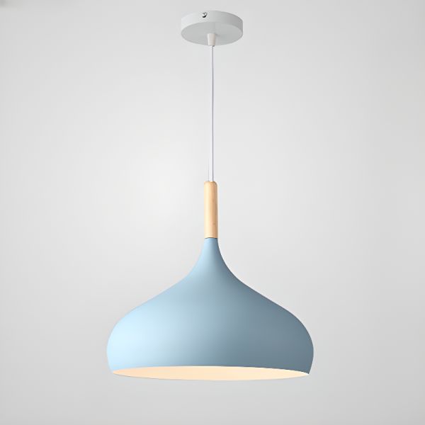 Nordic Minimalist Aluminum Pendant Light with Natural Wood Accent - Blue 110V-120V Bowl