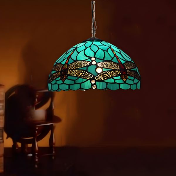 1-Ligh Pendant Lighting Tiffany-Style Dome Shape Stained Glass Hanging Light - 110V-120V Aqua