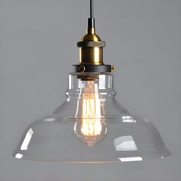 Industrial Glass Pendant Light with Adjustable Cord and Vintage Brass Socket for Kitchen Island - Clear Bowl 110V-120V