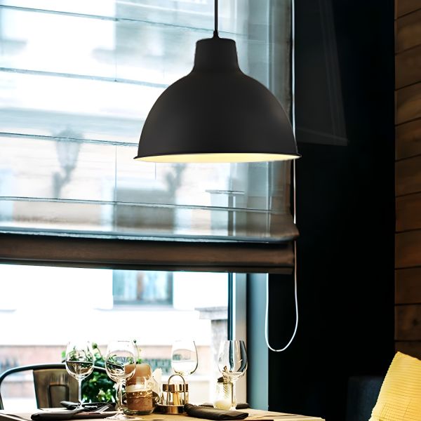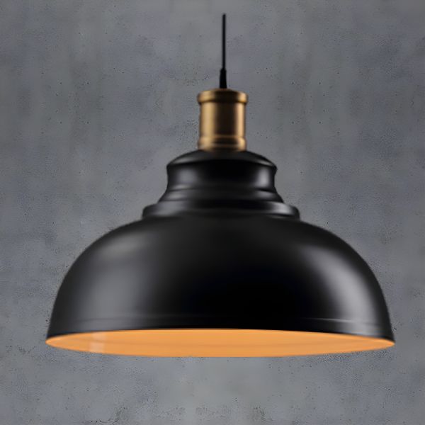 Modern Industrial Dome Pendant Light, Matte Metal & Gold Accent Fixture for Kitchen & Restaurant - 110V-120V Black 12" Bowl