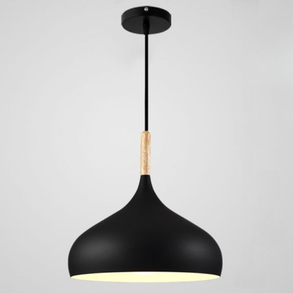 Nordic Minimalist Aluminum Pendant Light with Natural Wood Accent - Black 110V-120V Bowl