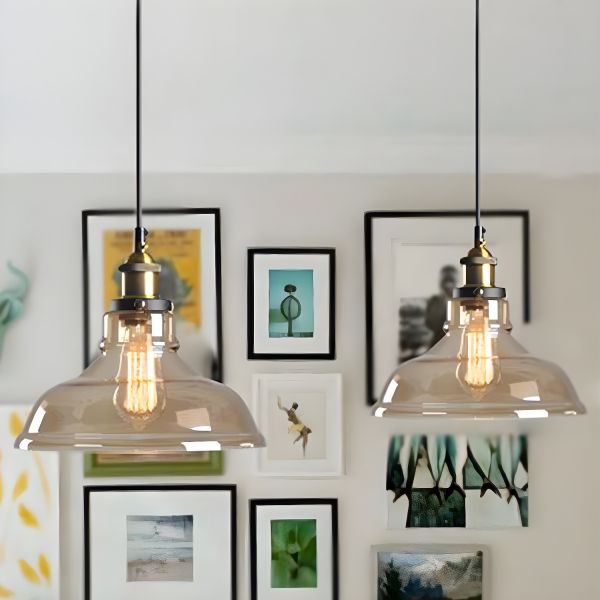 Industrial Glass Hanging Light 1-Light Geometric Pendant Light - 110V-120V Amber Bowl
