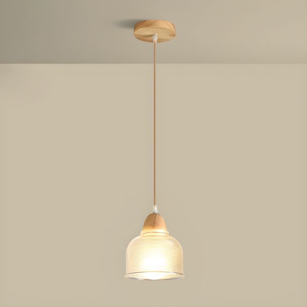 Japandi Solid Wood & Glass Pendant Light, Textured Hanging Lamp for Kitchen Island Dining Room - 110V-120V Bowl 1