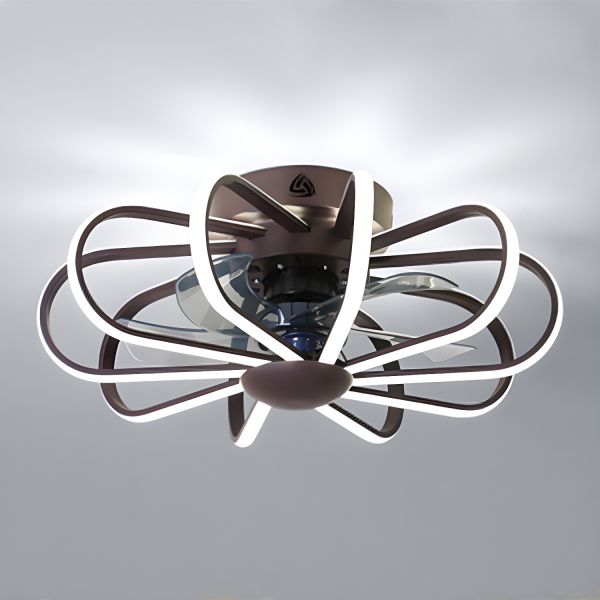 Contemporary Flush Mount Ceiling Fan with LED Light, Enclosed Blades for Low Ceilings - Flower Shape 110V-120V Coffee