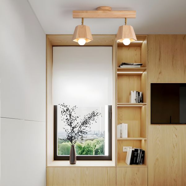Scandinavian Solid Wood Track Light, Linear Flush Mount Ceiling Fixture with Adjustable Shades - 2 110V-120V