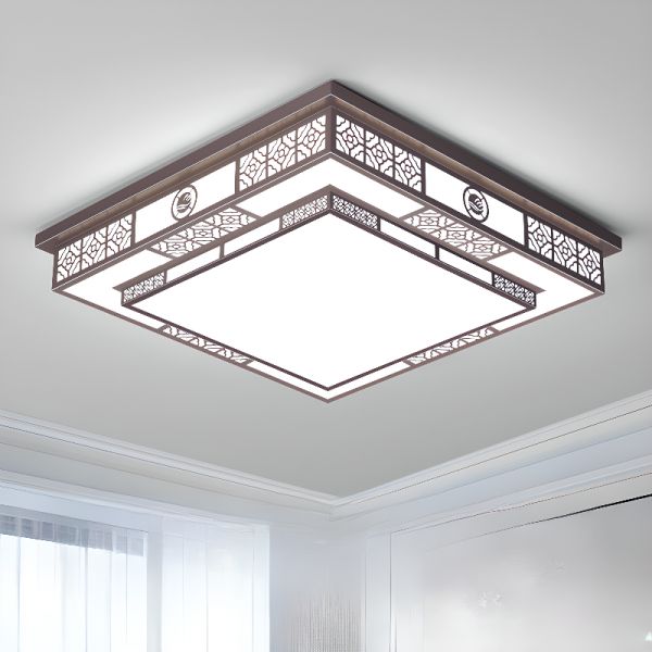 Geometric Minimalist LED Flush Mount Light, Low Profile Architectural Fixture for Bedroom Hallway - Coffee 110V-120V Square