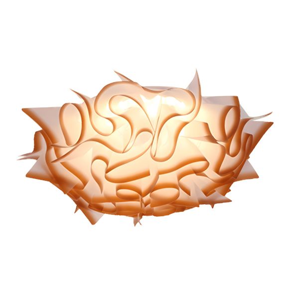 Contemporary Crystal Floral LED Flush Mount Light, Amber Lotus Center with Square Glass Base - Amber 110V-120V White Light