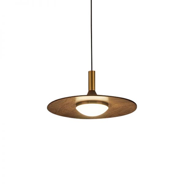 Mid-Century Modern Solid Wood Pendant Light with Brass Accents for Dining Room - 1 110V-120V Warm Light 10"
