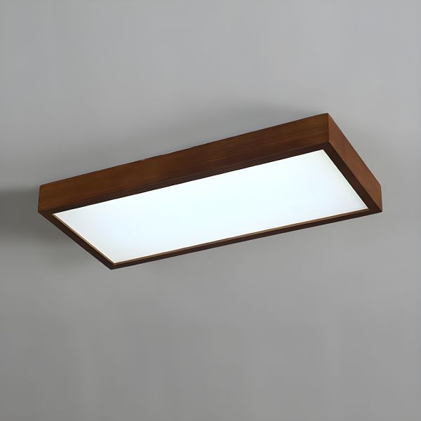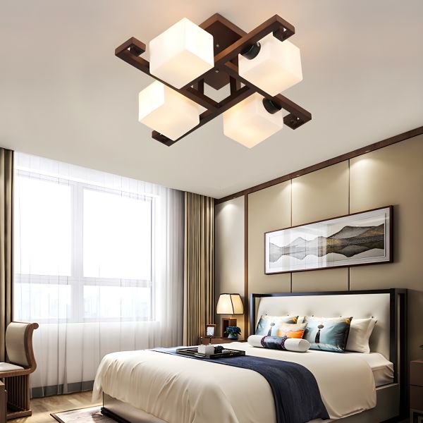 Geometric Wood Flush Mount Ceiling Light, Frosted Glass Square Shades, Walnut Finish Fixture for Bedroom - 110V-120V 4