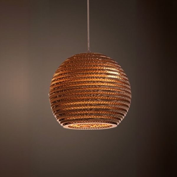 Organic Rustic Corrugated Paper Pendant Light, Recycled Cardboard Hanging Lamp for Warm Ambient Glow - 110V-120V Globe