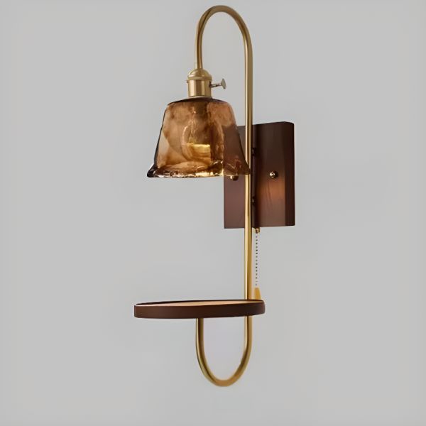 Wall Sconce with 1 Light Golden Metal Downward Geometric Shade in Ceramics - Brown 110V-120V