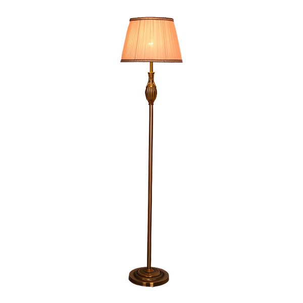 French Regency Carved Floor Lamp with Embroidered Pleated Shade and Heavy Bronze Base - 110V-120V Coffee