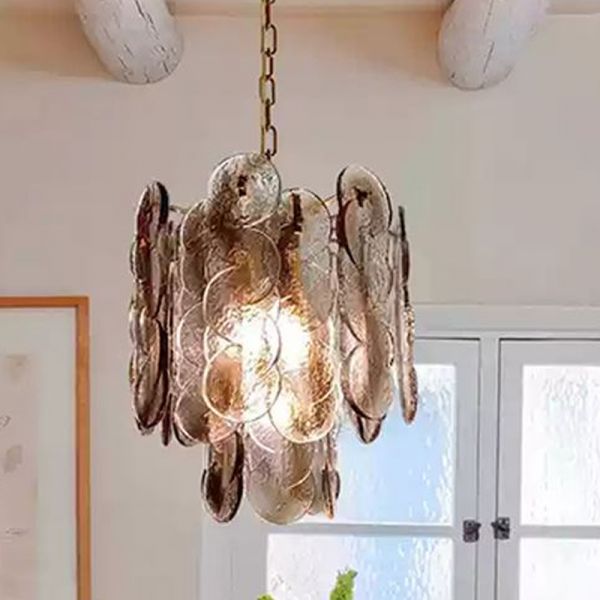 Sepia Water Ripple Shade Hanging Light with 2 Tiers and Adjustable Chain, 110V-120V, 14"