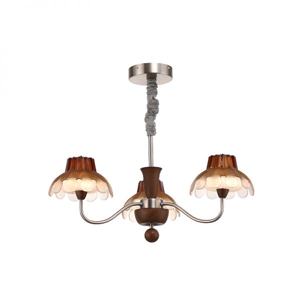Brown Floral Shade 3 Lights Hanging Island Pendant Light, 110V-120V