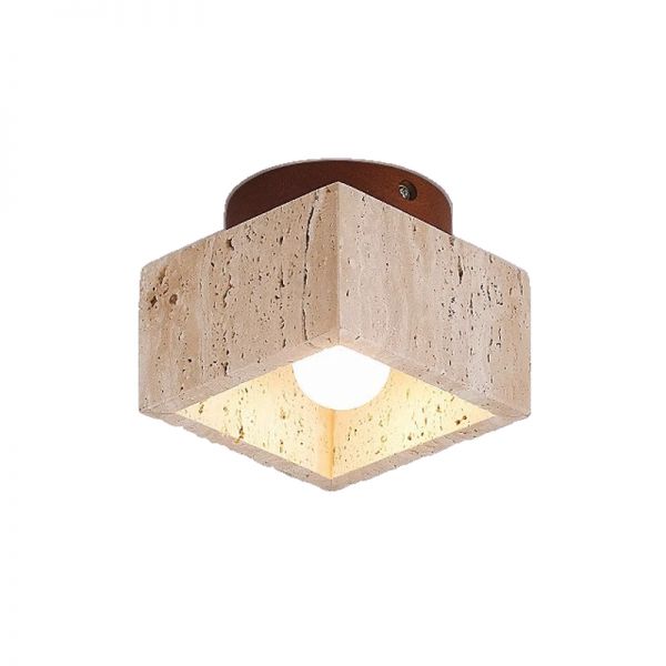 Sintered Stone Shade Sepia Ceiling Sconce with Natural Wood, 110V-120V, Square
