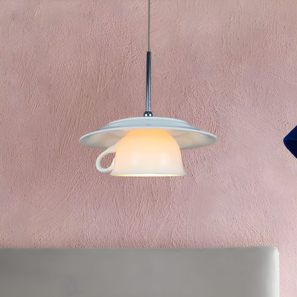 1-Bulb Living Room Down Lighting Simple White Ceiling Light with Coffee Cup Ceramics Shade